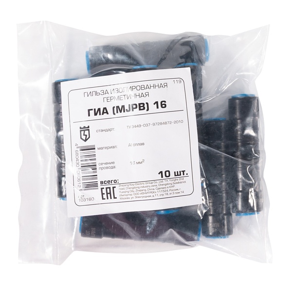 Гильза соединительная КВТ изолированная герметичная ГИА для ответвлений абонентских линий СИП, сечением 16 мм2 103160
