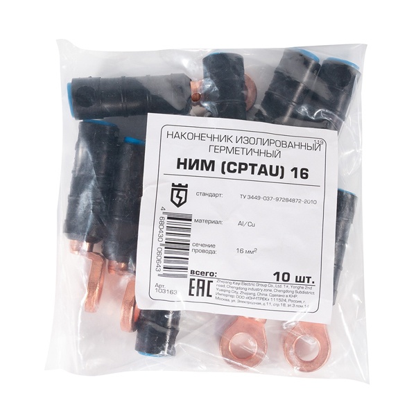 Наконечник кольцевой КВТ изолированный герметичный НИМ (CPTAU) для оконцевания проводов СИП, сечением до 35 мм2 103165