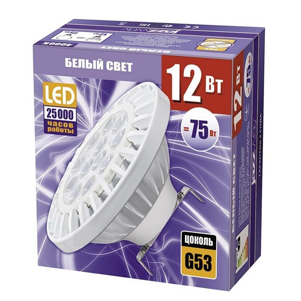 Энергосберегающая LED лампочка таблетка акцентного освещения, мощностью 12 Ватт, с цоколем G53, нейтральный белый свет 1033895