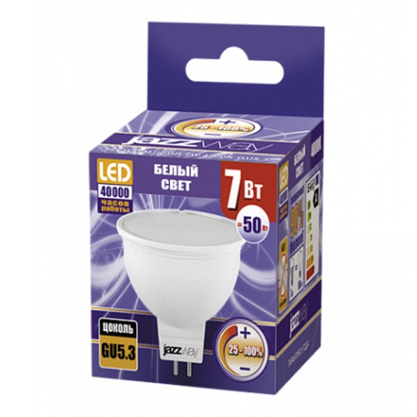 Диммируемая энергосберегающая LED лампочка мощностью 7 Ватт с цоколем GU5,3 белый свет 1035431