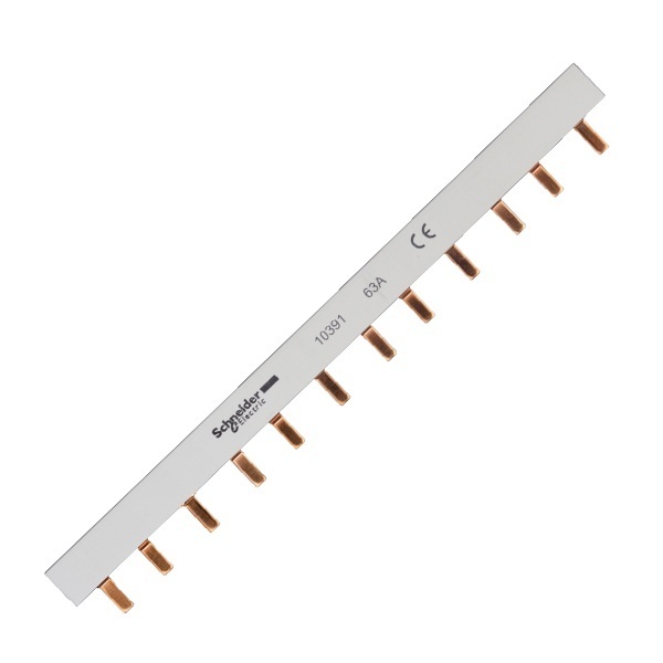 Гребенчатая шинка для аппаратов серии Домовой Schneider Electric, трехполюсная, 12 модулей по 18 мм, на номинальный ток 63 А, тип разъема - PIN (штырь), цвет - светло-серый (RAL 7035), совместима с устройствами ВА63. - Гребенчатая шинка предназначена для распределения электропитания внутри распределительного щита. - Она обеспечивает быструю, долговечную и безопасную установку устройств и их простой демонтаж при замене.