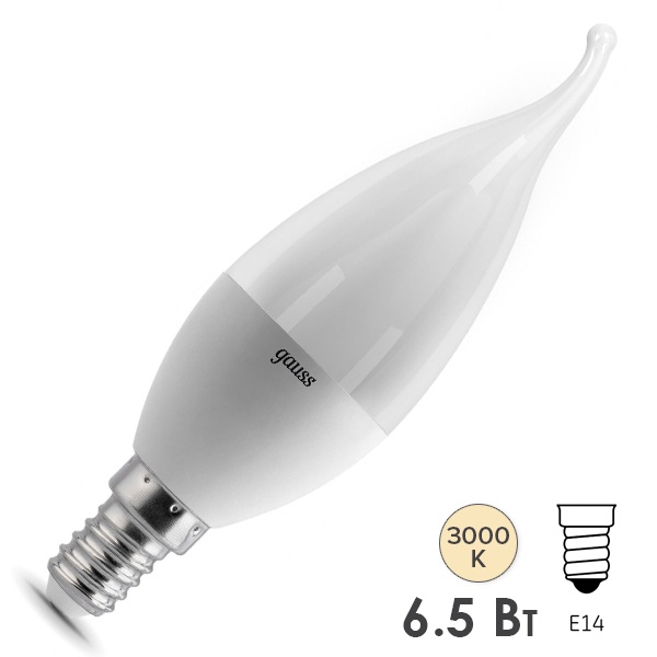 Энергосберегающая LED лампочка свеча на ветру, мощностью 6,5 Вт, с цоколем E14 (миньон), теплый белый свет 104101107