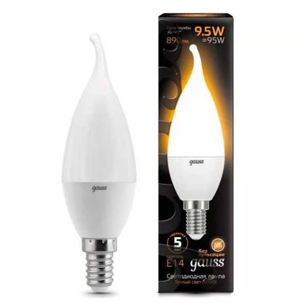 Энергосберегающая LED лампочка свеча на ветру, мощностью 9,5 Вт, с цоколем E14 (миньон), теплый белый свет 104101110