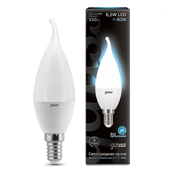 Энергосберегающая LED лампочка свеча на ветру, мощностью 6,5 Вт, с цоколем E14 (миньон), белый свет 104101207