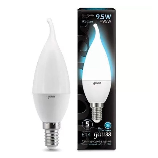 Энергосберегающая LED лампочка свеча на ветру, мощностью 9,5 Вт, с цоколем E14 (миньон), белый свет 104101210