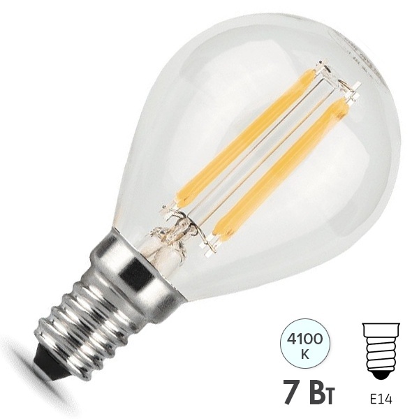 Филаментная лампочка шарик Гаусс с нитевидными светодиодами, со ступенчатой регулировкой яркости, мощностью 7 Ватт, с цоколем E14, нейтральный белый свет 105801207-S
