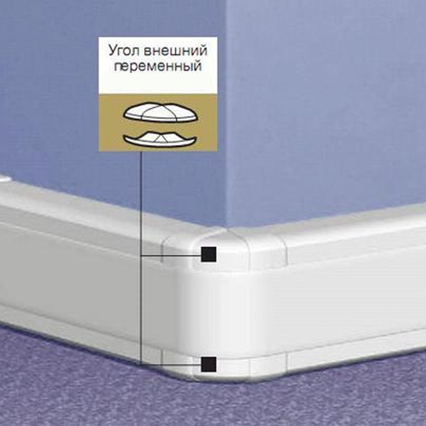 Внутренние и внешние переменные углы позволяют монтировать кабель-канал даже в случае, если угол поворота отличается от стандартных 90 градусов.