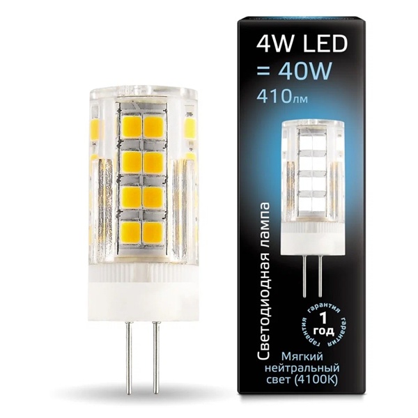 Капсульная, светодиодная лампочка Гаусс, мощностью 4 Ватта с цоколем G4, нейтральный белый свет, керамический корпус 107307204