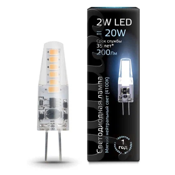 Капсульная, светодиодная лампочка Гаусс, мощностью 2 Ватта с цоколем G4, нейтральный белый свет, силиконовый корпус 107707202