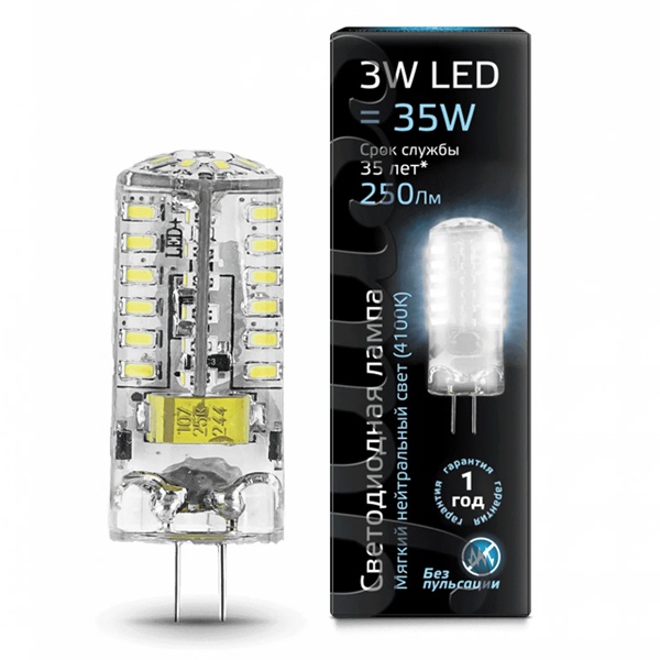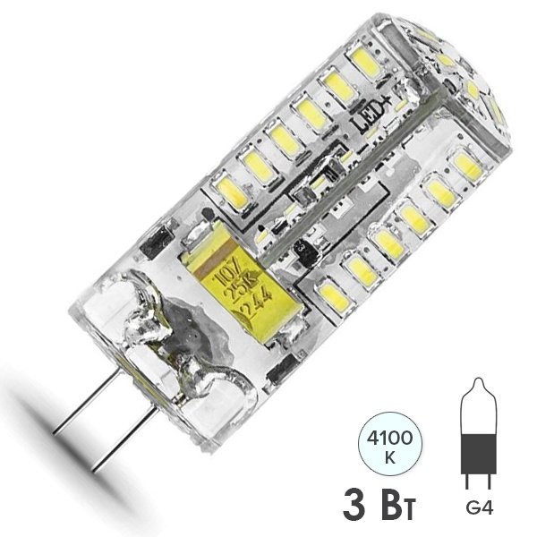 Капсульная, светодиодная лампочка Гаусс, мощностью 3 Ватта с цоколем G4, нейтральный белый свет, силиконовый корпус 107707203