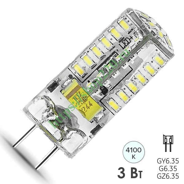 Капсульная, светодиодная лампочка Гаусс, мощностью 3 Ватта с цоколем G6,35, нейтральный белый свет, силиконовый корпус 107719203
