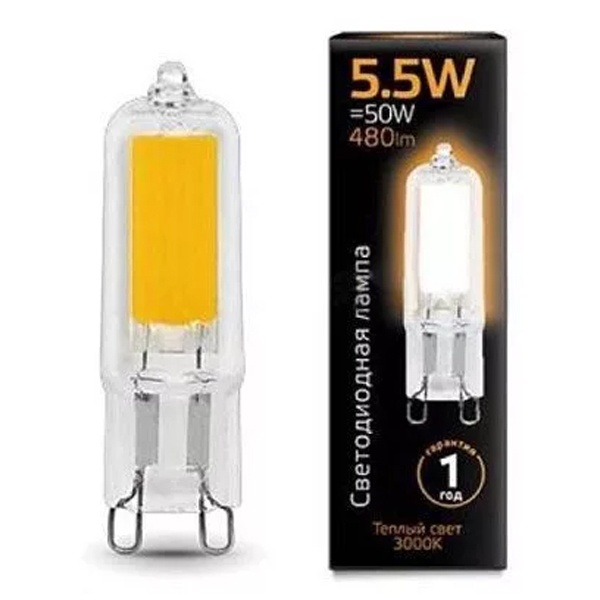 • Лампа светодиодная капсула Gauss Black G9 5.5W 3000K 220V G9 480Lm стекло тепло-белый свет