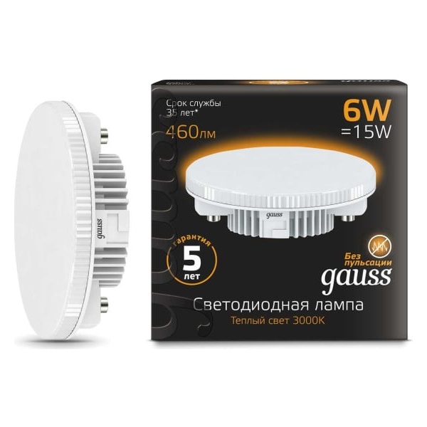LED лампочка таблетка мощностью 6 Вт с цоколем GX53 теплый белый свет для натяжных потолков 108008106