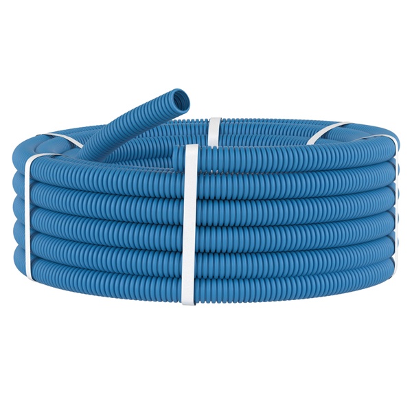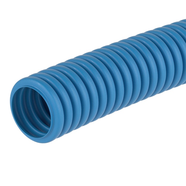 Гофрированные трубы из самозатухающего полипропилена не распространяют горение. Материал устойчив к экстремальным температурным воздействиям, а высокая ударная прочность и эластичность позволяют применять трубы в монолитном бетоностроении. В серии выпускаются легкие, тяжелые и сверхтяжелые трубы, отличающиеся по весу, уровню ударопрочности и устойчивости к нагрузкам. Трубы применяются для прокладки электрических, телефонных, компьютерных кабелей. Специальная протяжка, входящая в комплект, облегчает прокладку кабеля во внутреннем пространстве трубы. Диаметр трубы - 16 мм. Цвет - синий.