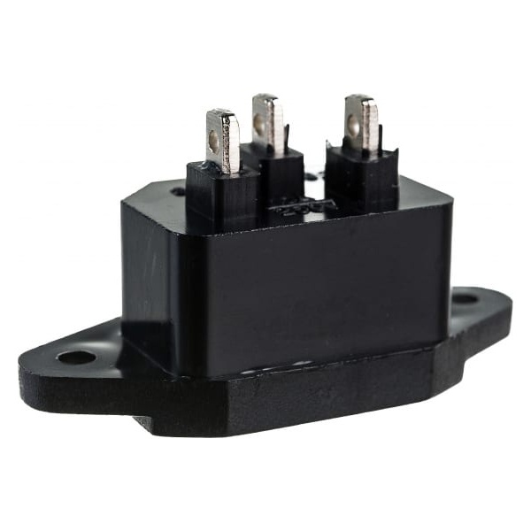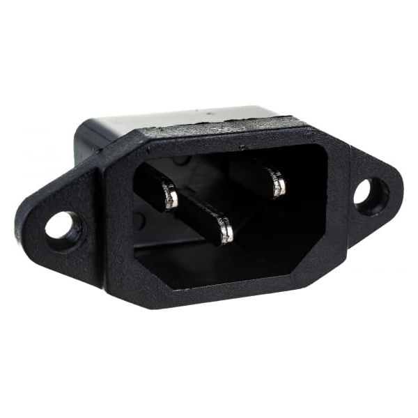 Cетевое гнездо на корпус используется для подключения оборудования к сети переменного тока. Штекер крепится к корпусу с помощью боковых винтов. Имеет три контакта: ноль, фаза и заземление, к которым с передней стороны подсоединяется сетевой шнур, а с задней — подключается оборудование.