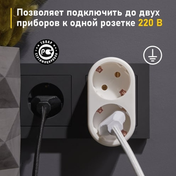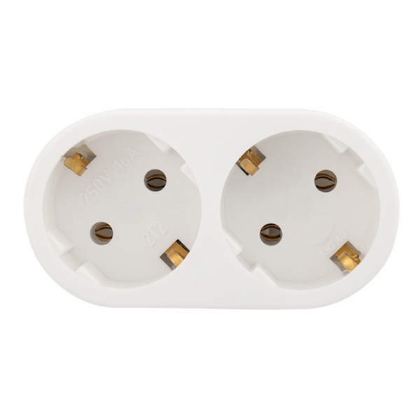 Разветвитель 2-м с заземл. 16А IP20 бел. Rexant 11-1075