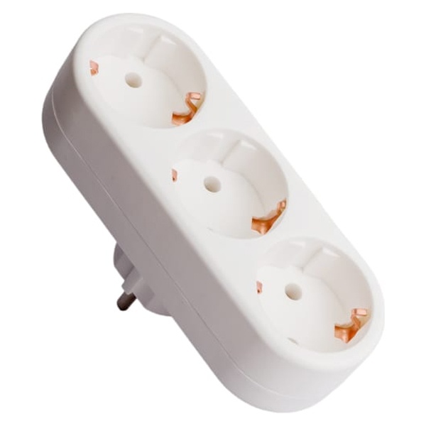 Белый тройной разветвитель электрической розетки с заземлением на 16 Ампер 230 Вольт, Рексант. 11-1079