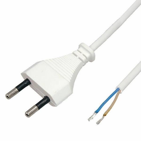 Шнур сетевой 1.5 м без розетки белый REXANT предназначен для подключения к сети переменного тока (AC) с напряжением 220 B электроприборов напрямую (скруткой или клеммным соединителем), без использования розетки. Данный шнур состоит из двухжильного провода с сечением жил 0.5 мм2, с одной стороны литой неразборной плоской вилки (евро), с другой — подготовленных (зачищенных и облуженных оловом) проводников.