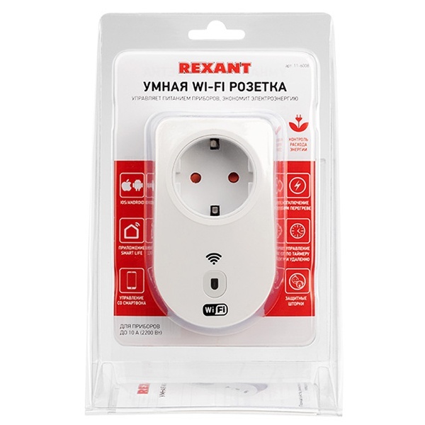 Умная Wi-Fi розетка REXANT11-6008 – современное устройство, позволяющее управлять питанием приборов со смартфона на любом расстоянии, доступном к сети Wi-Fi.