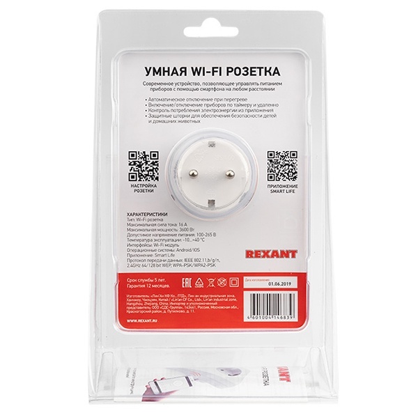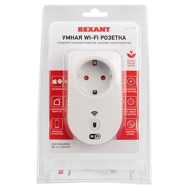 Умная Wi-Fi розетка REXANT11-6009 – современное устройство, позволяющее управлять питанием приборов со смартфона на любом расстоянии, доступном к сети Wi-Fi.