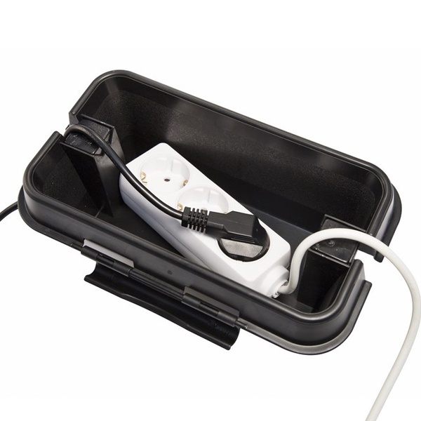 Бокс всепогодный защитный выглядит как обычный короб, но при этом значительно превосходит аналогичные товары благодаря своим особенностям. Корпус выполнен из прочного пластика. Всего в боксе расположено 2 выхода для проводов. Простой механизм закрывания не требует дополнительных винтов, но при этом обеспечивает полную изоляцию от влаги за счет силиконовых уплотнителей. Бокс может быть использован как для изоляции источников питания и сетевых удлинителей садового оборудования и инструментов, так и для декоративного освещения для вашего дома. Вы сможете легко вывести все провода на улицу и подключить необходимое количество гирлянд для украшения дома и участка.