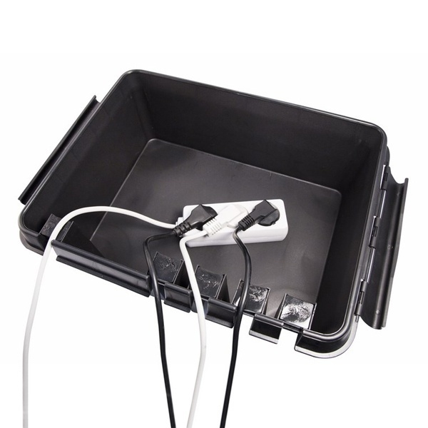 Бокс всепогодный защитный выглядит как обычный короб, но при этом значительно превосходит аналогичные товары благодаря своим особенностям. Корпус выполнен из прочного пластика. Всего в боксе расположено 5 выходов для проводов. Простой механизм закрывания не требует дополнительных винтов, но при этом обеспечивает полную изоляцию от влаги за счет силиконовых уплотнителей. Бокс может быть использован как для изоляции источников питания и сетевых удлинителей садового оборудования и инструментов, так и для декоративного освещения для вашего дома. Вы сможете легко вывести все провода на улицу и подключить необходимое количество гирлянд для украшения дома и участка.