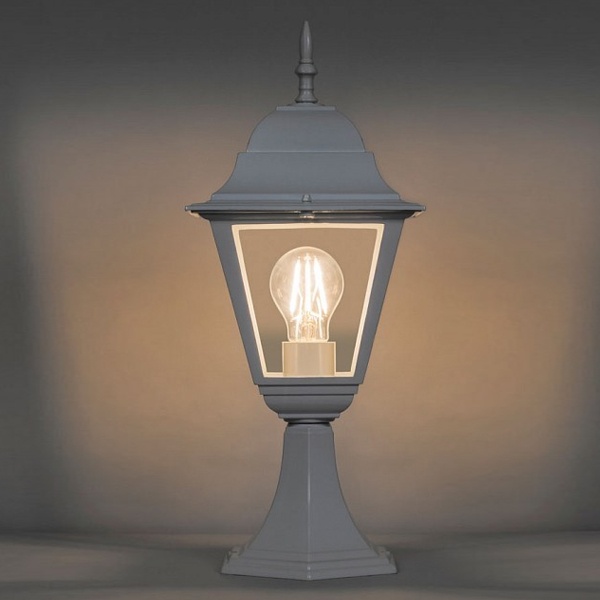 Светильник садово-парковый, серии «Классика», (НТУ) FERON 4104/PL4104 60W, E27, 230V, IP44, цвет белый, 4-х гранник, на постамент, 150*150*380мм