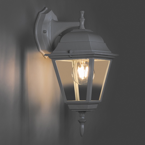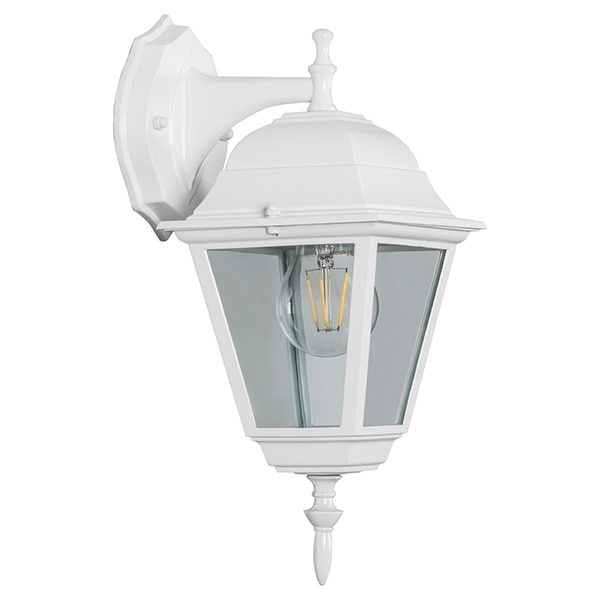 Светильник садово-парковый, серии «Классика», (НБУ) FERON 4201/PL4201 100W, E27, 230V, IP44, цвет белый, 4-х гранник, на стену вниз, 185*215*400мм