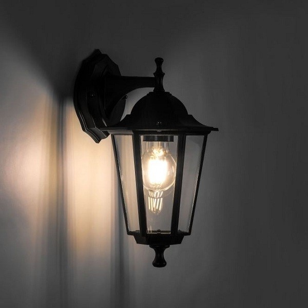 Светильник садово-парковый, серии «Классика», (НБУ) FERON 6202/PL6202 100W, E27, 230V, IP44, цвет черный, 6-и гранник, на стену вниз, 265*200*400мм