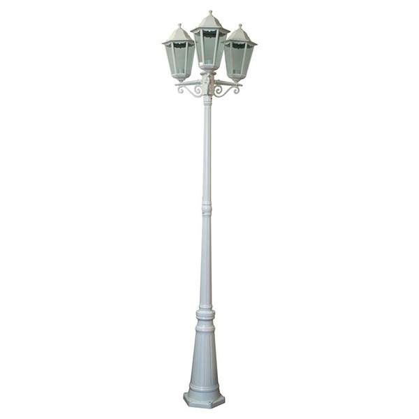 Тройной садово-парковый светильник Ферон с креплением на столб высотой 2200 мм в корпусе белого цвета мощностью 3х100 Ватт. 11079