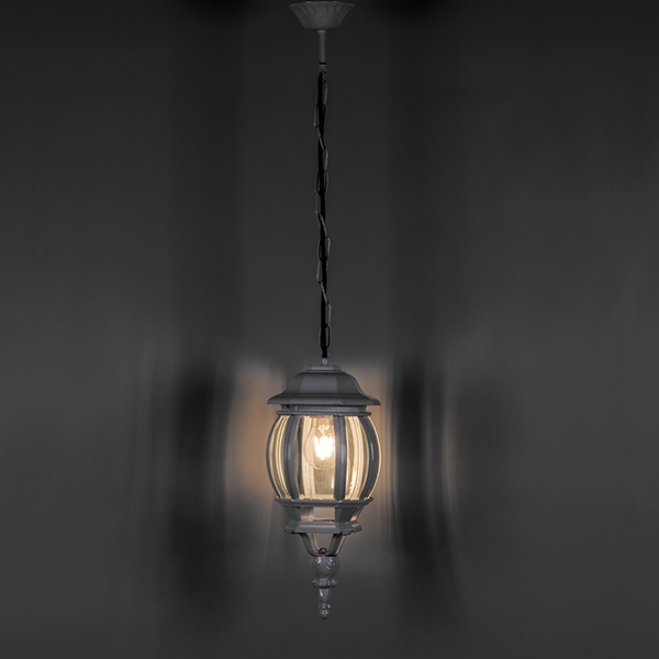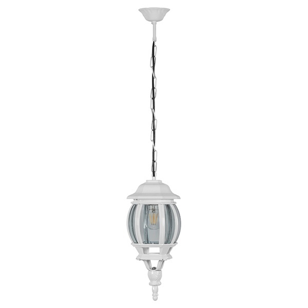 Подвесной уличный фонарь с округленным корпусом из силумина и стекла модели 8105 E27 из серии Классика от производителя Feron предназначен для освещения террас, веранд, беседок, подвешивается в кафетериях, ресторанах, а так же используется для освещения входной группы домов.Каркас имеет габаритные размеры 160х160х400 мм, подвешивается на металлическую цепь длиной 500 мм, обеспечен защитой от пыли и влаги системой класса IP44. Материал устойчив против агрессивных воздействий и температурных изменения атмосферы.Для освещения используются светодиодные, энергосберегающие, а также лампы накаливания с цоколем Е27. Сам фонарь, включая цепь, покрашен в черный цвет.Основные характеристикиМощность источников света – 60-100 Ватт.Сетевое напряжение для подключения светильника – 230 Вольт.Патрон под цоколь E27.Модель - 8105 E27.Габаритные размеры – 160х160х400 мм.Материал изготовления - силумин.Стекло - матовое.Цвет плафона – белый.Коллекция – Классика.Производитель – Feron.