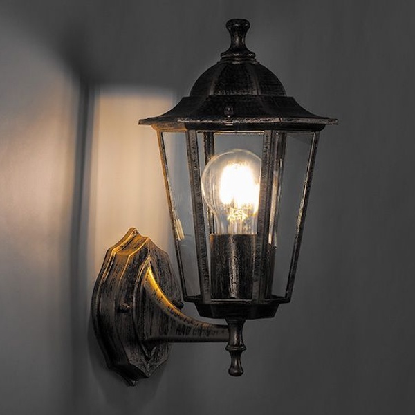 Уличный светильник 6101 E27 серии Классика от производителя компании Feron состоит из одного светильника, который крепится на стене в виде бра на ровной консоли фонарем вверх.