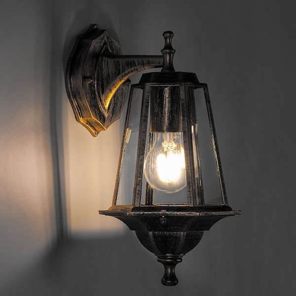 Светильник уличный от производителя Feron модель 6102 E27 из коллекции серии Классика состоит из одного фонаря, который крепится на ровной консоли фонарем вниз на стене в виде бра.Корпус светильника литой, изготовлен из силумина с прозрачными стеклами. Дизайн простой, выполнен в классическом стиле. Габаритные размеры фонаря составляют 170х200х320 мм. Вынос дальней точки светильника от стены составляет 200 мм, общая высота 320 мм. Светильник рассчитан на использование ламп с цоколем Е27 (энергосберегающие, накаливания, светодиодные). Корпус имеет высокую пыле- и влагостойкую защиту со степенью защиты IP44. Может устанавливаться для освещения открытых веранд, террас, беседок, в помещениях кафетериев, ресторанов и подсветки входных дверей домов. Краткие характеристики Сетевое напряжение - 230 Вольт.Мощность лампы - 60-100 Ват. Патрон под цоколь Е27. Модель светильника - 6102 E27.Коллекция - Классика.Производитель - Feron. Материал - силумин.Цвет светильника - черное золото.