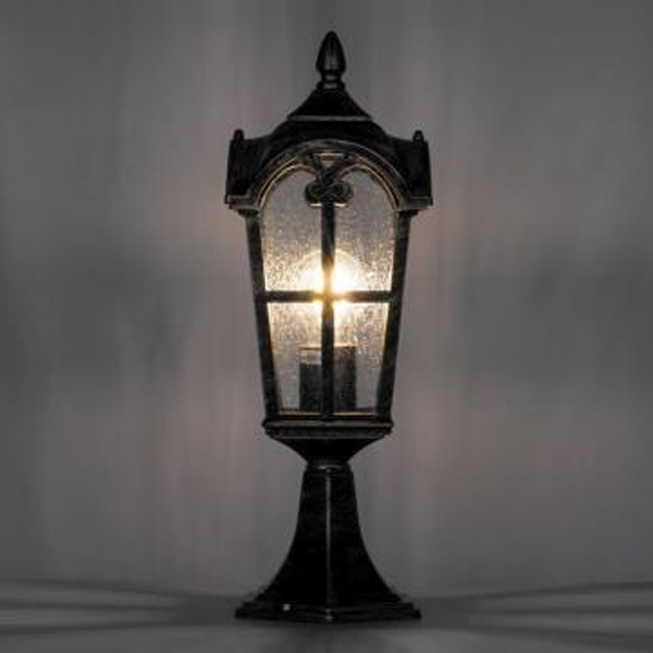 Светильник садово-парковый Замок PL105 E27 150*150*440мм черное золото (на постамент 0,45м) относится к многоцелевому осветительному оборудованию, может быть использован в качестве декоративной подсветки и основного освещения:- дорожек и газонов на приусадебном участке;- архитектурных элементов фасадов зданий;- полузакрытых летних беседок и террас.Адаптивные способности светильника обуславливаются конструкционной особенностью. Основание светильника представляет собой шестигранную установочную платформу с отверстиями под анкерный крепеж. Монтаж возможен на любую жесткую и ровную поверхность.Материал основных элементов конструкции – сплав алюминия и кремния (силумин), прочный и устойчивый к атмосферной коррозии. Рассеиватель фонаря выполнен из кварцевого стекла.Дополнительная информацияПроизводитель – Ферон (Китай).Габариты – 150х150х440мм.Производственная форма – литье.Комплектация – патрон резьбовой под цокольное соединение Е27.Токовые характеристики: мощность нагрузки в пределах 60 Ватт; энергообеспечение – общая сеть переменного тока с номинальным напряжением 220 Вольт. Источник света – любая лампа накаливания, соответствующая заданным параметрам. Производитель рекомендует использовать светодиодные лампы.Коэффициент защиты – IP44.