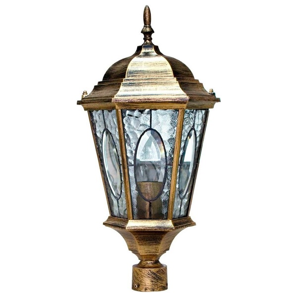 Светильник садово-парковый, серии «Рим», (НТУ) FERON PL152 60W, E27, 230V, IP44, цвет черное золото, 6-и гранник, на столб, 240*240*520мм
