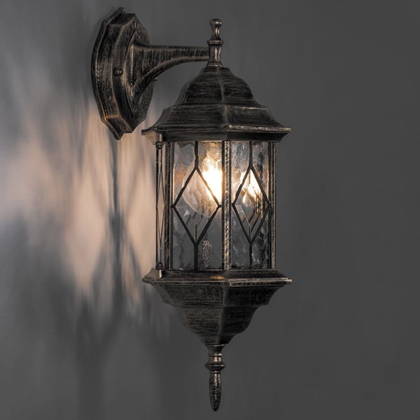Светильник садово-парковый Витраж PL121 E27 165*200*430мм черное золото на стену вверх устанавливается на любые вертикальные поверхности: стены; колонны; столбы. Оборудование используется для создания общего светового сценария в помещениях с любым микроклиматом и в качестве фасадной подсветки парадных входов.Описание: Компактная конструкция включает три основных элемента – шестигранный фонарь, короткую консоль и монтажную платформу. Консольный узел – низ фонаря. Цвет – черное золото. Рассеиватель фонаря – кварцевое стекло «битый лед».Дополнительная информацияПроизводитель – компания Ферон (Китай).Габариты – 165х200х430 мм.Материал – сплав алюминия и кремния, прочный и устойчивый к коррозии.Форма производства – литье.Комплектация – патрон резьбовой под ламповый цоколь Е27.Электротехнические характеристики:- максимальная мощность нагрузки – 60 Ватт;- подключение – к общей сети переменного тока;- номинальное сетевое напряжение – 220 Вольт;- световой элемент, рекомендованный производителем – лампа светодиодная.Коэффициент защиты от атмосферных воздействий – IP44.