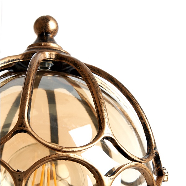 Светильник садово-парковый Сфера PL3801 E27 220*260*380мм черное золото (на стену вверх) предназначен для освещения открытых участков, прилегающих к забору и стенам здания. Возможен монтаж на прямоугольные столбы и колонны. Арматура фонаря, консоль и установочная платформа светильника - сплав алюминия и кремния (силумин). Производственная форма – литье. Сплав обладает высокой прочностью, износостойкостью и антикоррозийными свойствами. Консольное крепление – в нижней части.