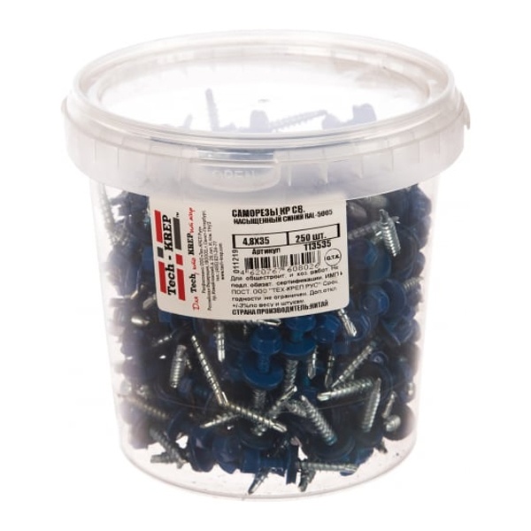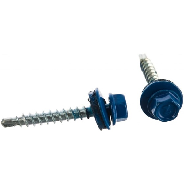 Применяется в частном и промышленном строительстве при монтаже крыш, навесов, фасадов, заборов и других конструкций, где требуется прочное и герметичное крепление металлических или композитных листов. Синий цвет позволяет сохранить единую стилистическую концепцию кровли или фасада, повышая визуальную привлекательность здания. Кровельные саморезы представлены в различных размерах, что позволяет подобрать оптимальный вариант в зависимости от толщины крепёжного материала и особенностей конструкции.