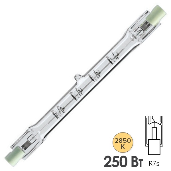 Лампа линейная для прожектора с патроном R7S – это чаще лампы, относящиеся к разряду галогенных ламп накаливания. Такие лампы с цоколем R7S небольшого размера и используются для точечного или направленного освещения. Галогенные лампы для прожекторов используют для освещения и подсветки в доме, офисе, на складах, а также для уличного освещения вывесок, рекламых щитов, подсветки музейных экспонатов, витрины магазина и точечных подсветок в строительстве - очень часто эти лампы под патрон R7S небольшой мощности, а вот линейные лампы высокой мощности используются на стадионах, в театральных и кинософитах, а также в подсветке автостоянок и строительных площадей. Эти лампы могут быть необходимы для выращивания растений, из-за этого часто используются для освещения теплиц.