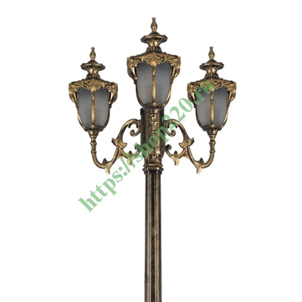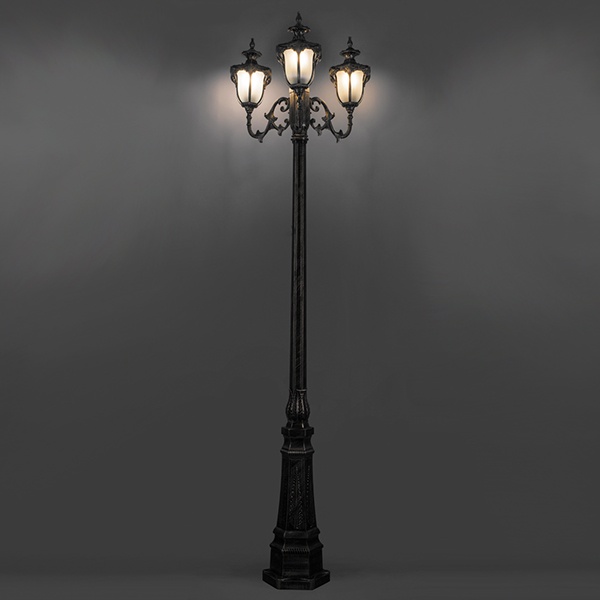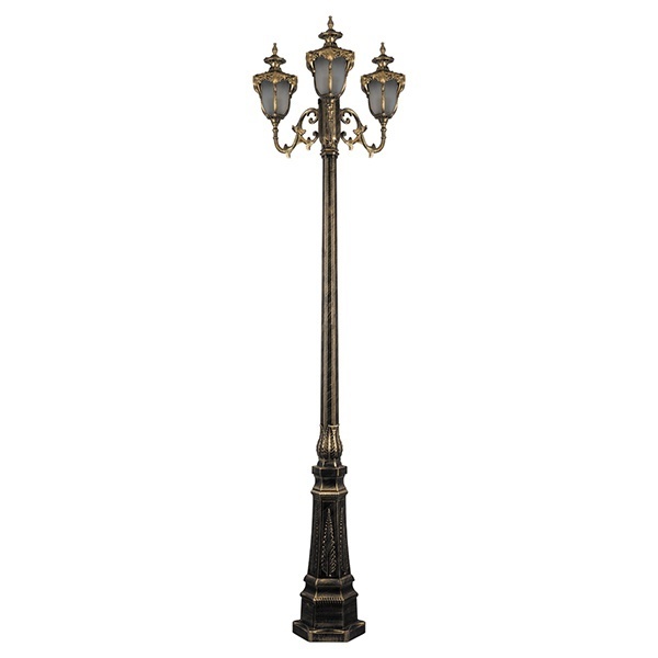Светильник садово-парковый Флоренция PL4059 3*E27 610*610*2300мм черное золото (столб 2,30м.) относится к категории осветительного оборудования верхнего уровня. Высота вертикальной опоры, а также наличие трех равноудаленных друг от друга фонарей, факторы, определяющие место установки конструкции, - в центре освещаемой площади.