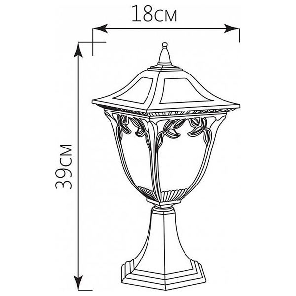 Светильник садово-парковый Афина PL4074 E27 180*180*390мм черное золото (на постамент) может быть установлен на любую горизонтальную поверхность достаточной прочности, как в помещении, так и на открытом воздухе. Чаще всего используются уже имеющиеся архитектурные элементы конструкций зданий и сооружений: балюстрады; пилоны; тумбы; бордюры; консольные выступы. В зависимости от места монтажа, оборудование служит для фонового освещения пространства и акцентированной подсветки отдельных объектов.Описание: Фонарь, в виде перевернутой пирамиды, установлен на шестигранное основание. Цвет – черное золото. Рассеиватель – «замерзшее» стекло.Дополнительная информацияПроизводитель – компания Feron (Китай).Габариты – 180х180х390 мм.Материал – сплав алюминия и кремния, прочный и стойкий к коррозии.Производственная форма – литье.Комплектация – патрон резьбовой под ламповый цоколь Е27.Электротехнические характеристики:- максимальная мощность нагрузки – 60 Ватт;- подключение – общая сеть переменного тока;- номинальное сетевое напряжение – 220 Вольт;- рекомендованный элемент света – лампа светодиодная.Коэффициент защиты – IP44.