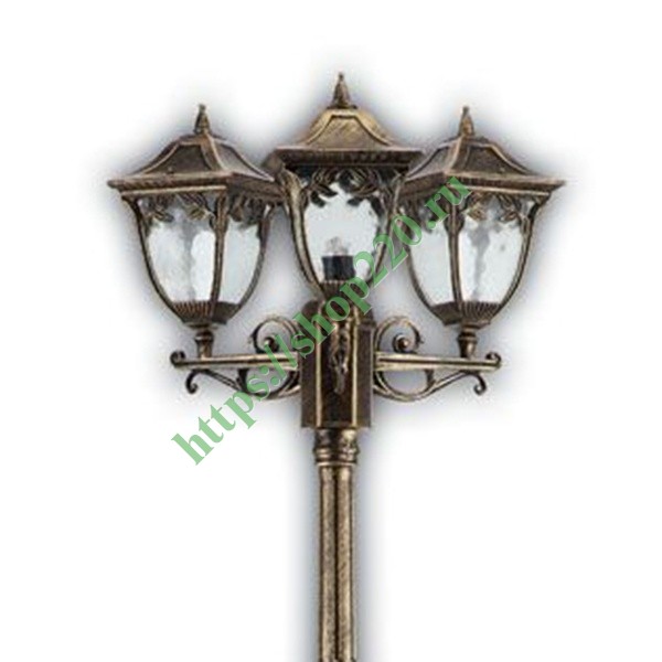 11488 Светильник садово-парковый Афина PL4079 3*E27 500*500*2100мм черное золото (столб 2,1м)