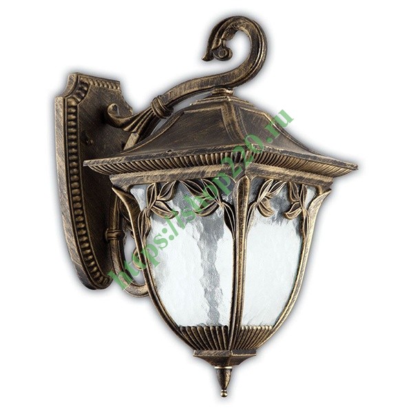 Описание: На монтажной платформе жестко закреплена витая консоль, удерживающая четырехгранный светильник в форме перевернутой пирамиды. Консольное крепление – верх фонаря. Цвет – черное золото. Рассеиватель – кварцевое стекло «битый лед».