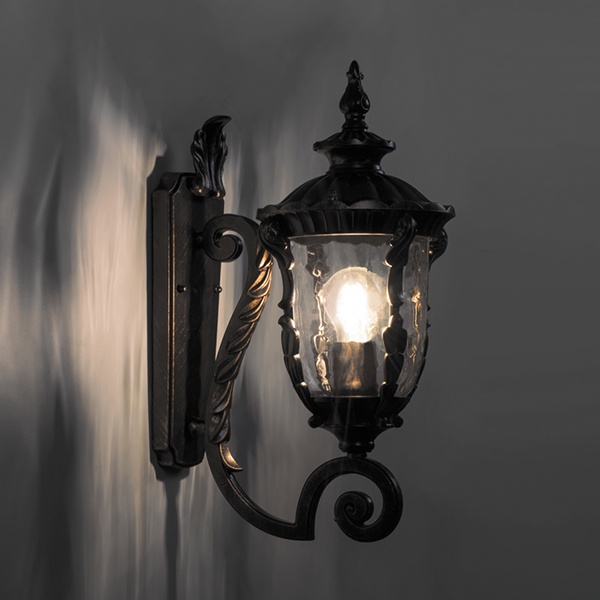 Светильник садово-парковый Шербур PL5001 E27 290*190*460мм темно-коричневое золото (на стену вверх) предназначен для фасадной подсветки, освещения помещений с высоким уровнем влажности и открытых внешним атмосферным воздействиям (балконы, террасы, летние беседки).