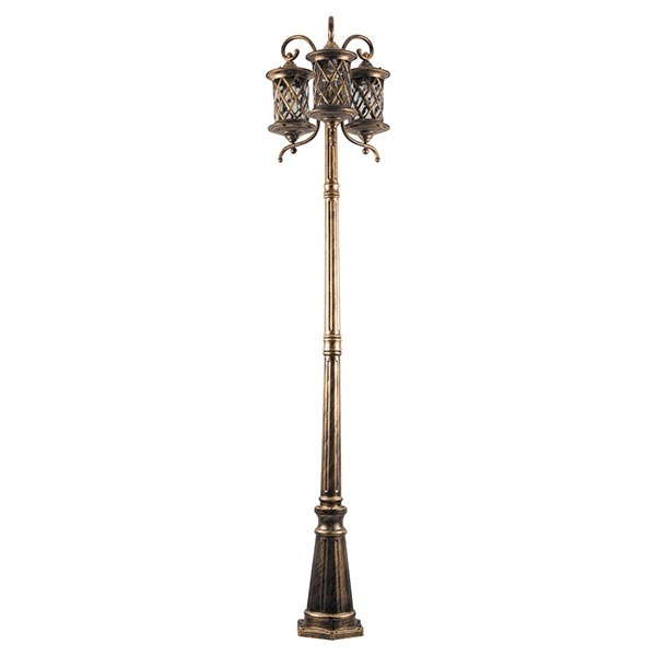 Трехконсольный столб и светильники окрашены в цвет черного золота.