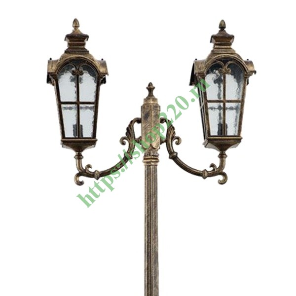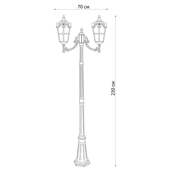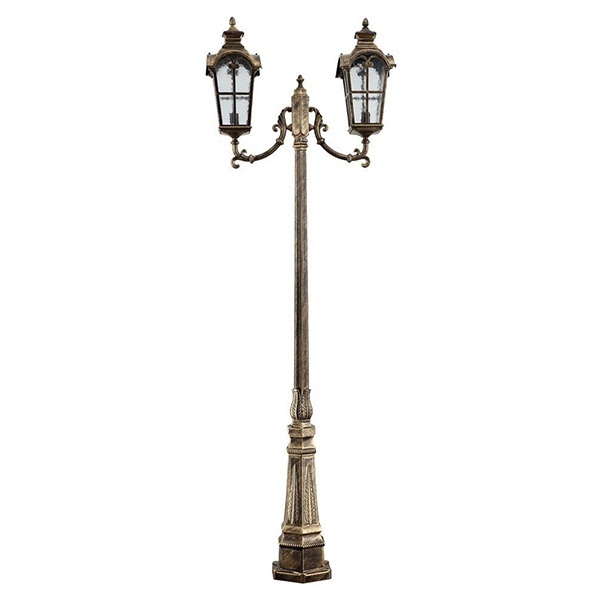 Светильник садово-парковый Замок PL5109 2*E27 700*230*2300мм черное золото (столб 2,3м) предназначен для освещения придомовой территории и игровых площадок в зоне отдыха.