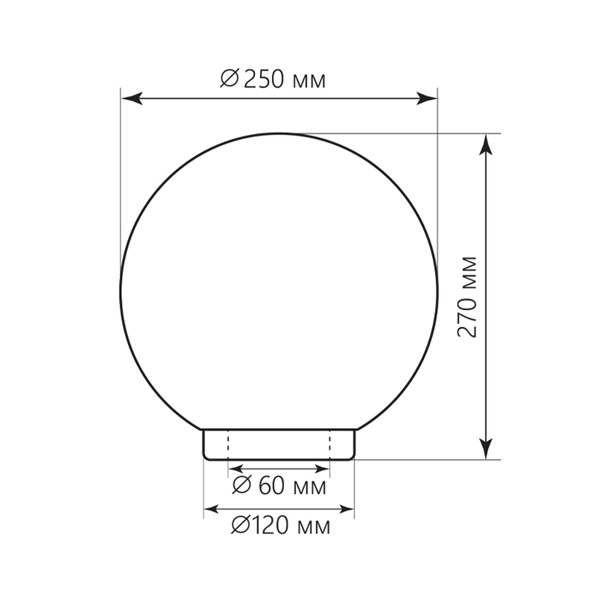 Светильник садово-парковый, серии «Оптима», (НТУ) FERON НТУ 02-60-255 60W, E27, 230V, IP44, цвет дымчатый, шар, на столб, 250*250*270мм