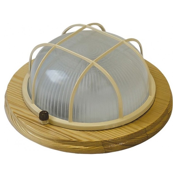 Светильник накладной под лампу, пылевлагозащищённый неповоротный (НБО) FERON НБО 03-60-012, E27 60W, 220VV, IP54, цвет клен, корпус сталь, дерево, рассеиватель стекло, 220*220*92