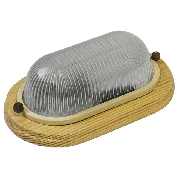 Светильник накладной под лампу, пылевлагозащищённый неповоротный (НБО) FERON НБО 04-60-011, E27 60W, 220VV, IP54, цвет клен, корпус сталь, дерево, рассеиватель стекло, 230*140*75