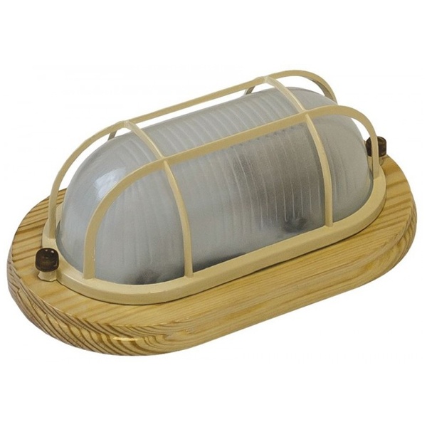 Светильник накладной под лампу, пылевлагозащищённый неповоротный (НБО) FERON НБО 04-60-012, E27 60W, 220VV, IP54, цвет клен, корпус сталь, дерево, рассеиватель стекло, 230*140*85